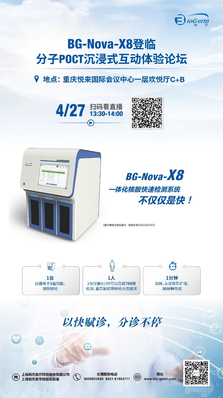作為敢于創(chuàng)新的高新技術(shù)企業(yè),伯杰醫(yī)療受邀參與盛會(huì),并攜獨(dú)特的恒溫核酸擴(kuò)增檢測(cè)分析儀(型號(hào):BG-Nova-X8)登臨“分子POCT沉浸式互動(dòng)體驗(yàn)論壇”,誠(chéng)邀國(guó)內(nèi)檢驗(yàn)醫(yī)學(xué)各位專(zhuān)家與同道、共同見(jiàn)證并交流分子POCT的新技術(shù)及創(chuàng)新產(chǎn)品。