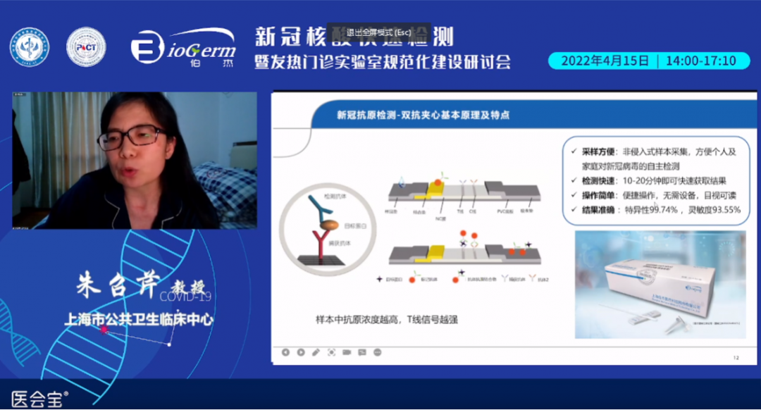 會上各位專家學者對新冠核酸快速檢測的發(fā)展、臨床應用,發(fā)熱門診實驗室的規(guī)范化建設,核酸檢測實驗室生物安全及個人防護,最新版的診療規(guī)范及篩查方案,新冠抗原檢測應用等相關內(nèi)容展開分享和討論。