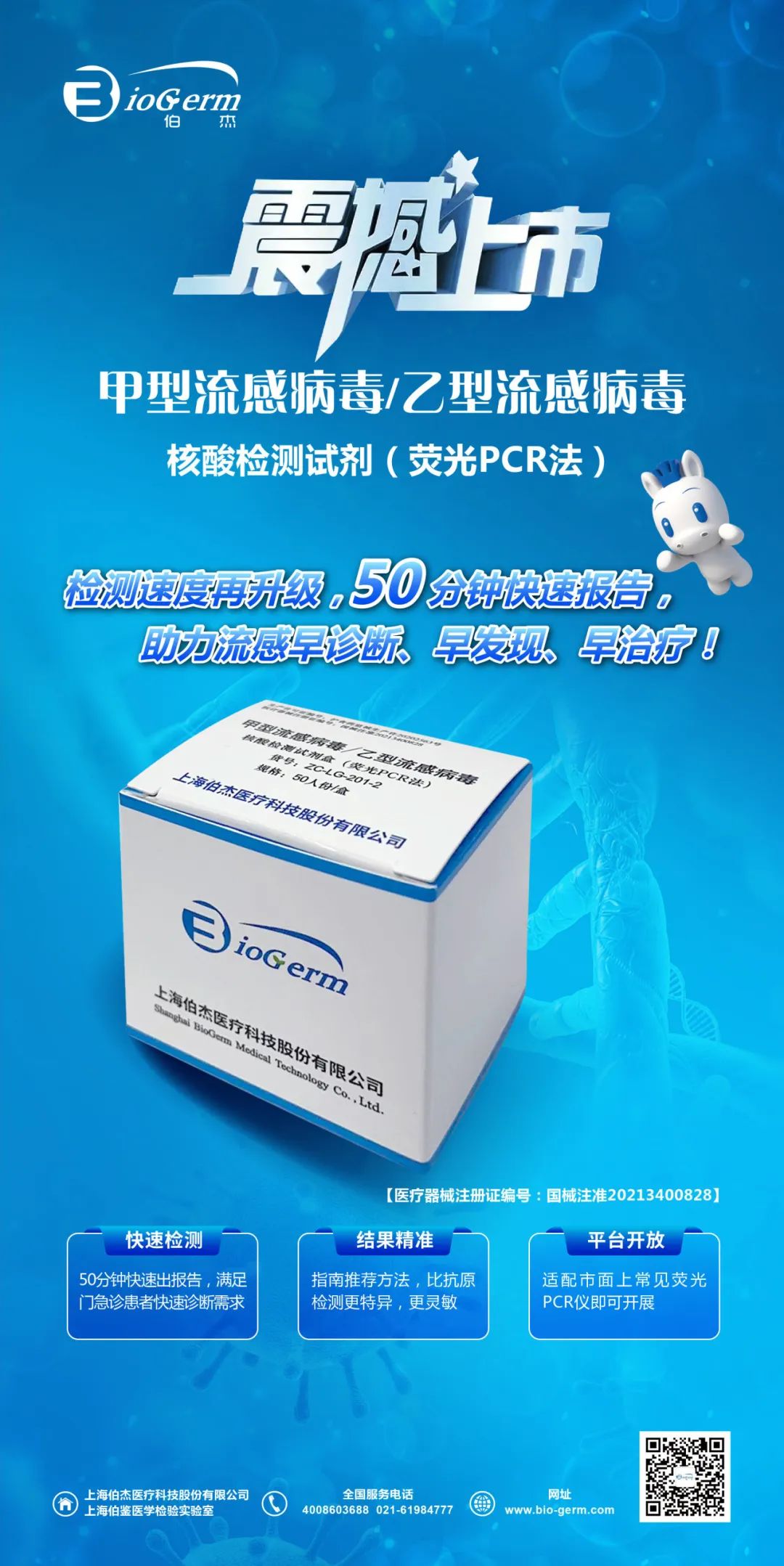 近日,此次伯杰獲批上市的甲型流感病毒/乙型流感病毒核酸檢測試劑(熒光PCR法)通過國家藥品監(jiān)督管理局審核,獲批上市。該試劑檢測速度快,50分鐘快速報告,更好的滿足門急診患者和住院患者快速診斷需求,助力流感早診斷、早發(fā)現(xiàn)、早治療!流感核酸檢測結(jié)果精準(zhǔn),是指南推薦方法,比抗原檢測更特異,更靈敏。此項目平臺開放,適配市面上常見熒光PCR儀即可開展。