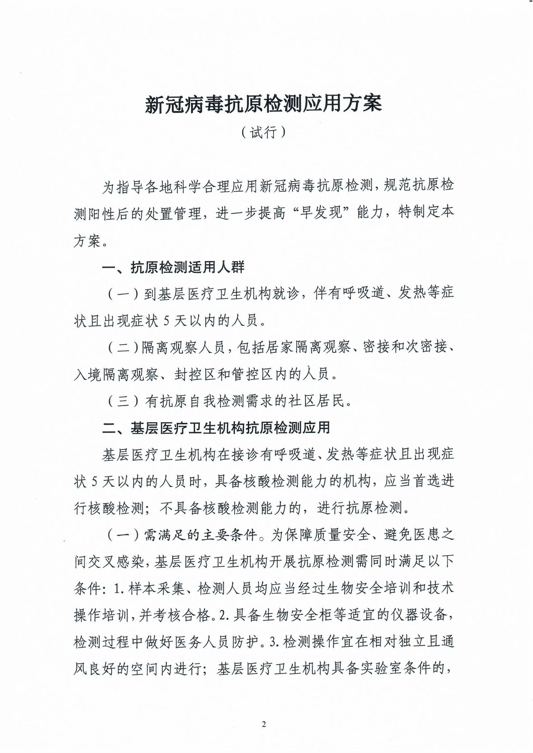 為進(jìn)一步優(yōu)化新冠病毒檢測策略,服務(wù)疫情防控需要,經(jīng)研究,國務(wù)院應(yīng)對新型冠狀病毒肺炎疫情聯(lián)防聯(lián)控機(jī)制綜合組決定在核酸檢測基礎(chǔ)上,增加抗原檢測作為補(bǔ)充。旨在指導(dǎo)各地科學(xué)合理應(yīng)用新冠病毒抗原檢測,規(guī)范抗原檢測陽性后的處置管理,進(jìn)一步提高“早發(fā)現(xiàn)”能力。