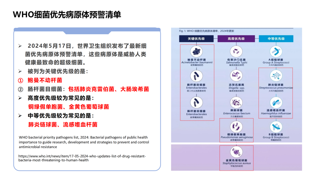 [3]https://www.who.int/news/item/17-05-2024-who-updates-list-of-drug-resistant-bacteria-most-threatening-to-human-health