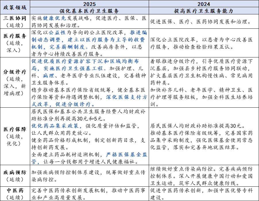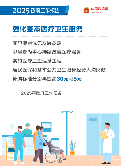 報(bào)告部署2025年政府工作十項(xiàng)任務(wù),在第十項(xiàng)“加大保障和改善民生力度,提升社會(huì)治理效能”中指出,要“強(qiáng)化基本醫(yī)療衛(wèi)生服務(wù)”。