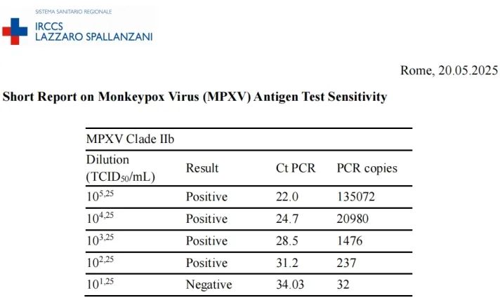 作為歐洲頂尖的病毒研究機(jī)構(gòu),意大利國(guó)家病毒庫(kù)通過(guò)全流程模擬臨床場(chǎng)景,對(duì)伯杰醫(yī)療猴痘抗原試劑進(jìn)行了深度性能評(píng)估,展現(xiàn)出其“雙重硬核實(shí)力”: