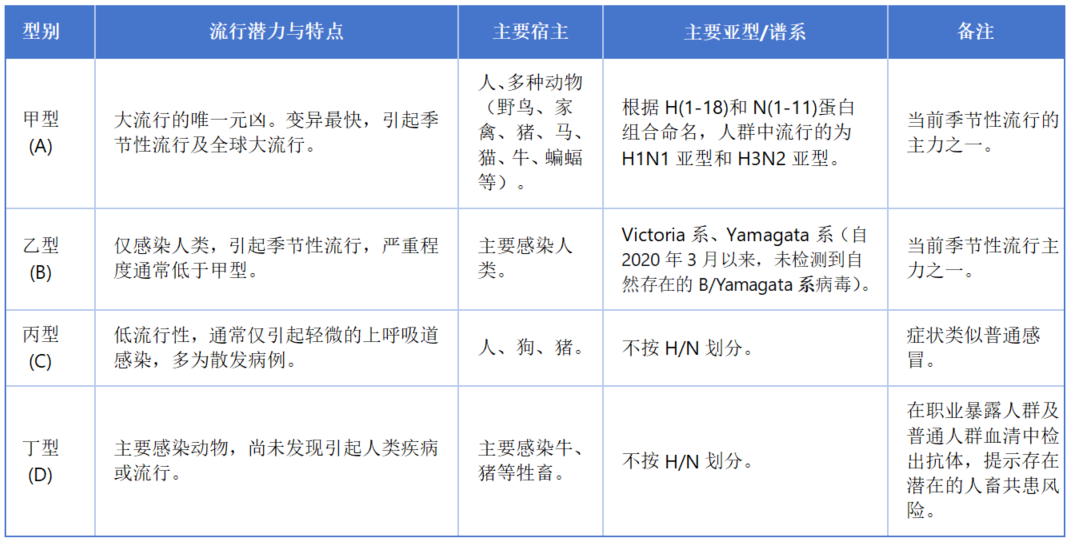 流感病毒型別對比表