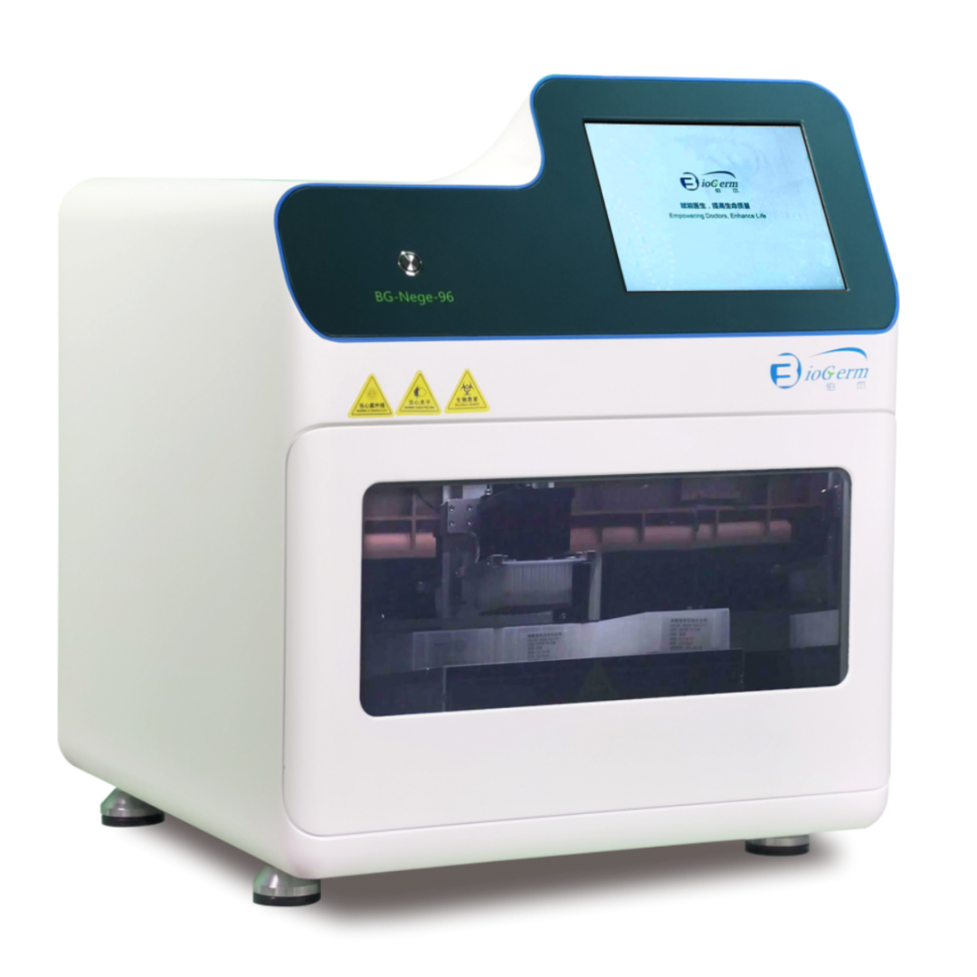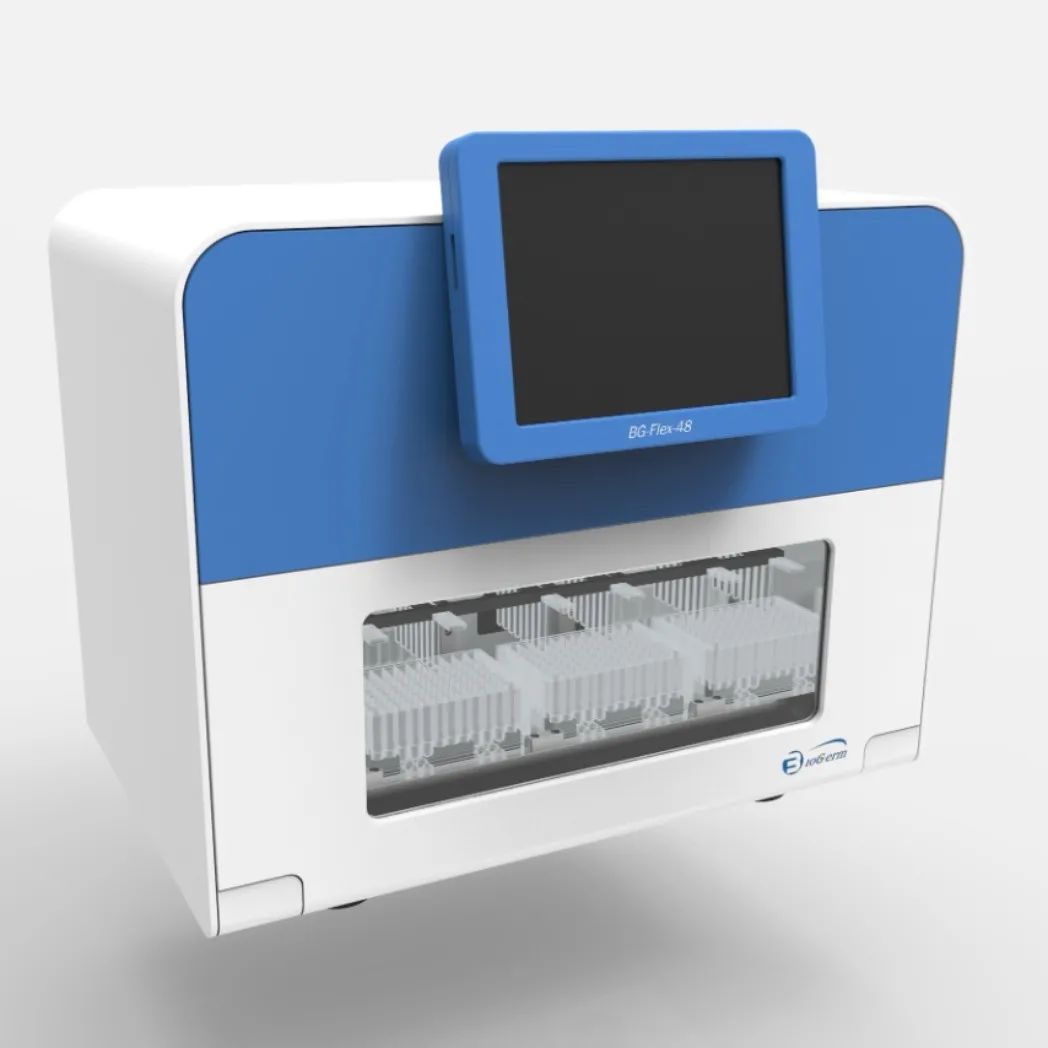 伯杰醫(yī)療自主研發(fā)的32/48/96通量全自動核酸提取儀,采用先進的磁珠技術進行磁珠轉移、分離,實現(xiàn)核酸全自動提取純化,可用于多種樣本的核酸檢測。產(chǎn)品生產(chǎn)符合國家法律法規(guī)及國際相關的標準的認證要求。儀器可同時進行32/48/96個樣本的核酸提取,最快9分鐘提取完畢,實現(xiàn)操作自動化,快速、簡便、結果準確可靠。