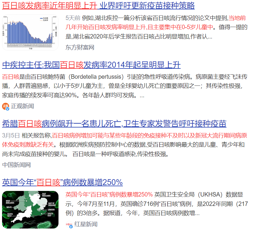 中國CDC數(shù)據(jù)也顯示,自2023年3月以來,百日咳的發(fā)病數(shù)開始上升,在2024年2月份,百日咳的發(fā)病數(shù)為17105,是2023年2月份的近32倍!