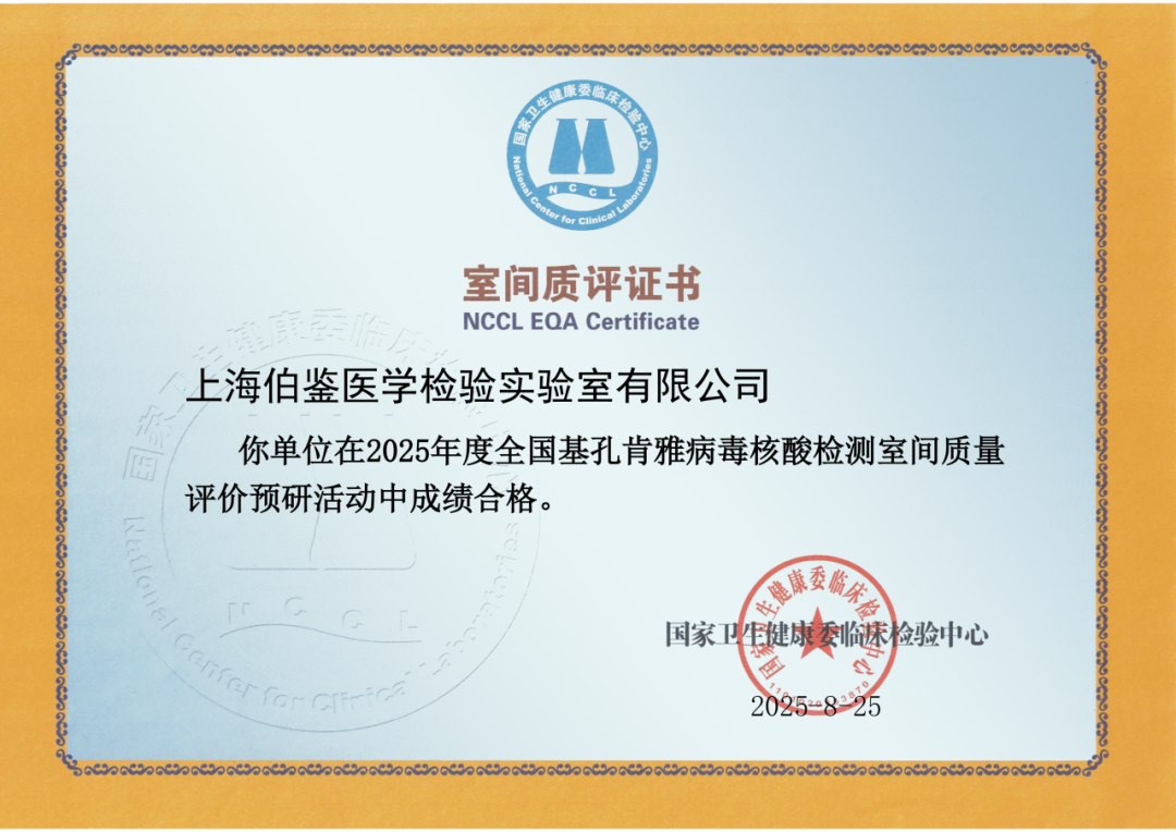 近日,國家衛(wèi)生健康委臨床檢驗中心(NCCL)正式公布“2025年度全國基孔肯雅病毒核酸檢測室間質(zhì)量評價預研活動”和“2025年新發(fā)再發(fā)經(jīng)血傳播病原體核酸檢測(蚊媒病原體)室間質(zhì)量評價”結(jié)果,上海伯鑒醫(yī)學檢驗實驗室憑借嚴謹?shù)馁|(zhì)量管理體系和精準的檢測能力,以優(yōu)異成績通過本次評估,充分彰顯了其在感染性疾病分子診斷領(lǐng)域的專業(yè)實力。